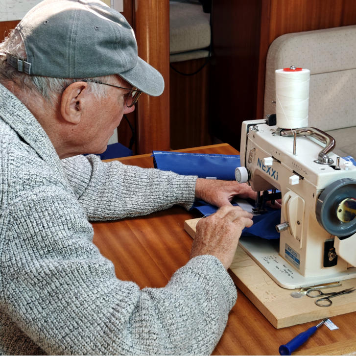 Zu Arbeiten ist natürlich immer was. Daher ist so ‘ne Segelnähmaschine jetzt auch bei uns