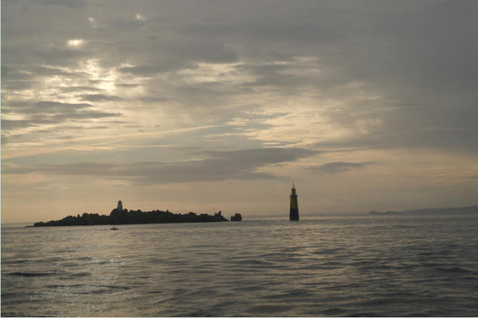 morgens los, durch den Chenal de Ile de Batz mit der Ebbströmung, also bei
