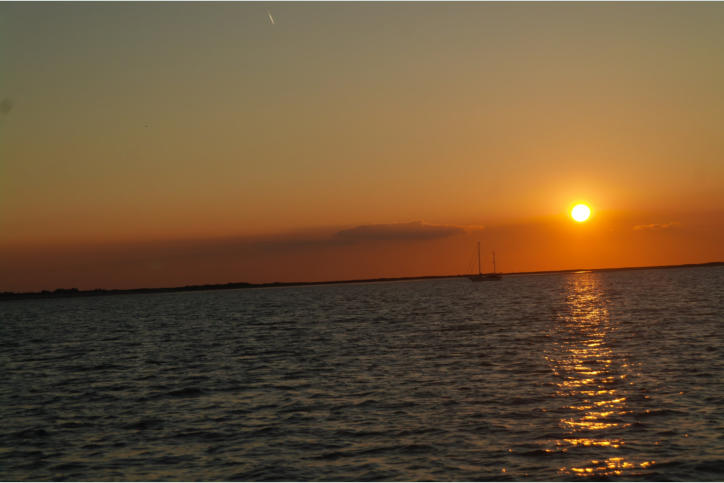Sonnenuntergangs, hier im Haringsvliet, wo wir auf der Rückreise kurz vor Rotterdam