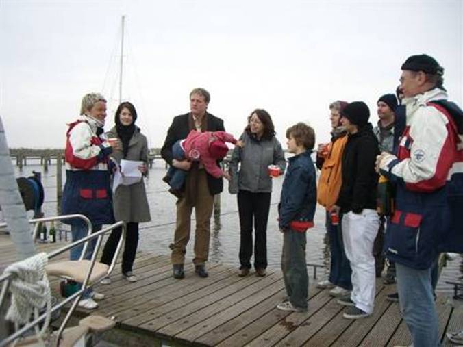 Eine Taufe ist ein fesselndes Ereignis, insbesondere wenn die Skipperin mit Unterstützung anwesender Jungfrauen um die Unterstützung des Klabautermanns bittet. Ansonsten war es noch leer im Außenhafen in Stavoren, wo wir dann das erste Jahr über gut aufgehoben waren. Der Skipper hat eine tolle Mütze auf (ein Geschenk). Der Film zeigt die komplette Ansprache und erklärt die Hintergründe, z.B. der Namensgebung. |