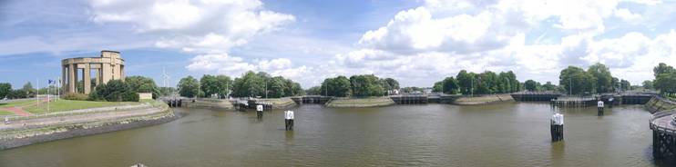 In Nieuwpoort gehen die Binnenkanäle von Südbelgien ab. Ein imposantes Bauwerk, dessen Ausmaß eigentlich erst aus dem Panoramabild hervorgeht (s.u.).
