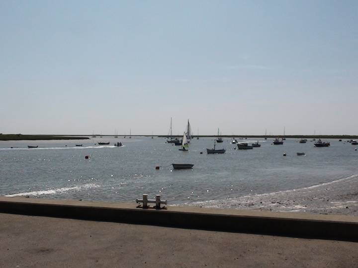 Der Ort Orford hat ausgedehnte Mooring-Felder, die offenbar in den Flüssen Ost-Englands immer größere Ausdehnung erfahren. Aber die Ortskundigen segeln hier furchtlos durch. Nebenbefundlich kann man hier das gute Wetter bestaunen, das wir hatten. |
