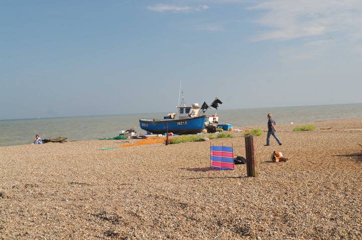 Früher lag hier der Ort Slaughton, der aber wiederholten Sturmfluten weichen mußte. Übrig sind nur noch ein Martello-Tower und - die Yachtclubs und eine Dockyard (letztere vermietet auch die visitors moorings, 5Pfd. pro Tag, die an der östlichen Seite des River Alde am südlichen Ende des Bojenfeldes liegen). Alles dreht sich um Tourismus und Fisch, wobei es keinen eigenen Nordsee-Hafen gibt, sondern die Boote alle mit Winden auf den Strand gezogen werden. Entsprechend ist draußen alles voller fischernetze, man sollte also in Höhe Aldeburgh in einigem Abstand von der Küste fahren. |